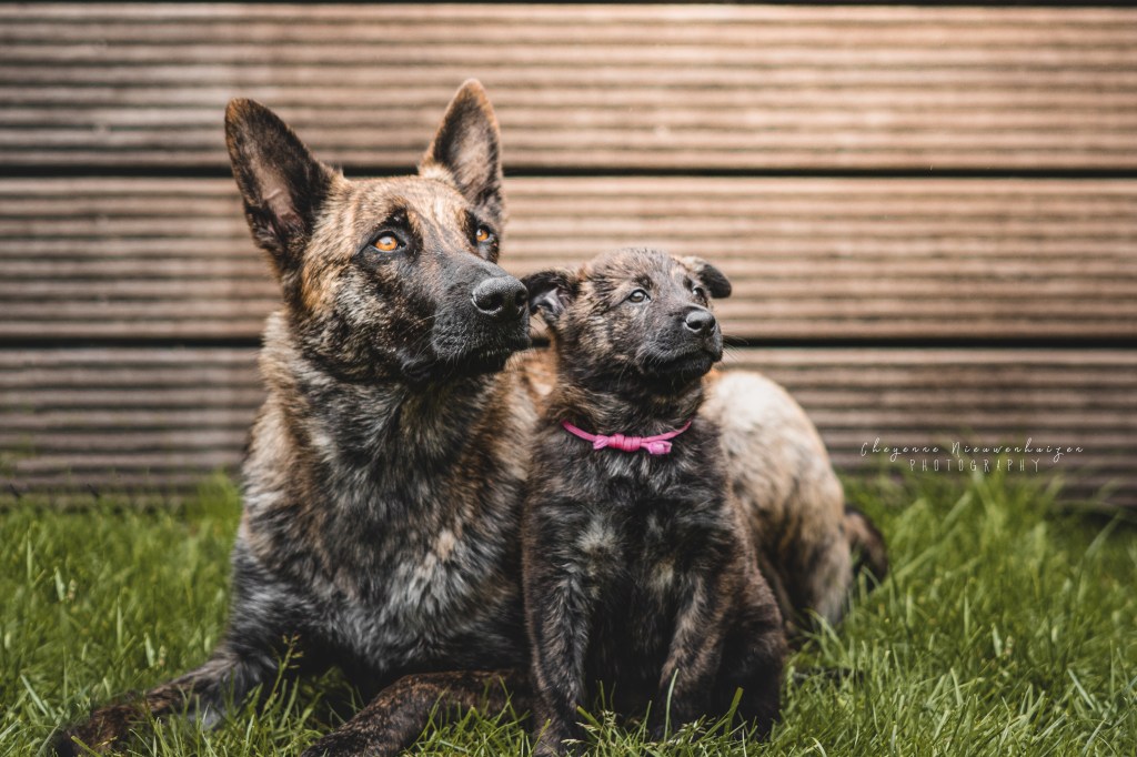 Uit Laska’s eerste nest (Laska met Frasnay’s Flair x Bolle de Vrolijke Hollander) geboren 23 mei 2018, is Akyra bij ons gebleven en zij heeft zich ontwikkeld tot een fijne stabiele lieve teef die graag samen met haar baas werkt. Akyra is onze hond maar ze groeit op bij mijn zus Paula (die woont 500 meter verderop). Ze zijn een echt team. De dagen dat Paula werkt is Akyra bij ons.